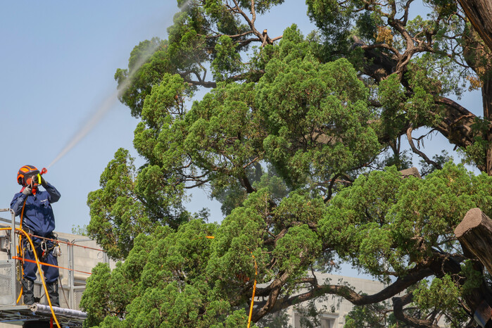 [시민일보 = 박소진 기자] 서초구(구청장 전성수)가 최근 서초역사거리 중앙 녹지대에 위치한 보호수 ‘천년향’에 대해 세척 작업을 실시했다고 25일 밝혔다.