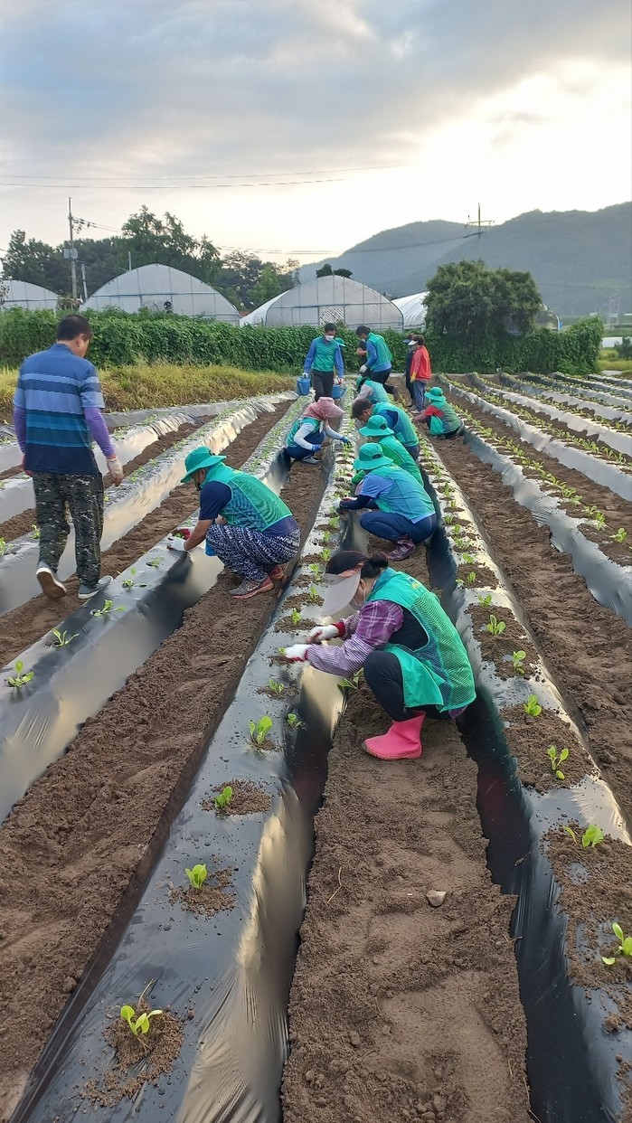 경기 이천시 율면 새마을남녀지도자협의회가 최근 월포4리 일원에서 ‘사랑의 배추전달 사업’을 위한 배추모종 심기 행사를 개최했다. 이날 심은 배추는 재배·수확해 매월 반찬봉사를 실천하는 율면이웃사랑봉사대에 무료 제공해 연말 김장나눔 행사에 사용할 예정이다. 사진은 이날 협의회 회원들이 배추모종을 심고 있는 모습. (사진제공=이천시청)