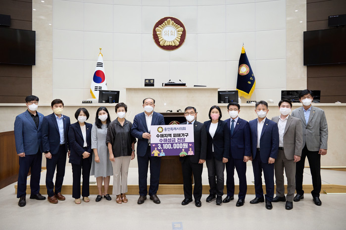 이번 성금 전달은 사회복지공동모금회에 전액 지정기탁해 용인시 관내에 수해 피해를 입은 저소득층의 가구에 현금으로 지원할 예정이다.