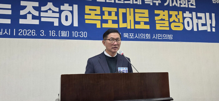 강성휘 예비후보는 16일 목포시의회 시민의방에서 기자회견을 열고 “전남 국립의과대학 정원 100명이 확정되고 2030년 개교가 전망되는 상황에서 이제 남은 것은 의과대학과 대학병원의 입지를 결정하는 일”이라며 “교육부가 전남 국립의과대학을 목포대학교로 조속히 결정해야 한다”고 밝혔다.