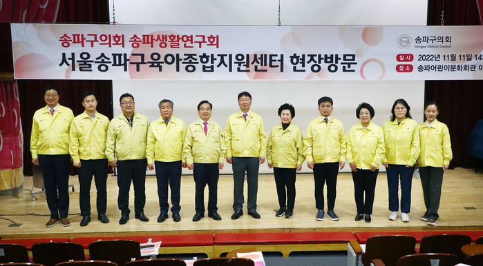 이날 김성호 연구회장, 장원만·김영심(부회장), 김광철, 김순애, 이하식, 손병화, 장종례, 이강무, 김행주, 최상진, 곽노상, 전 정 의원은 송파어린이문화회관을 방문해 육아종합지원센터 사업보고와 함께 전반적인 운영현황을 살펴보고, 주민들의 다양한 의견을 청취했다.