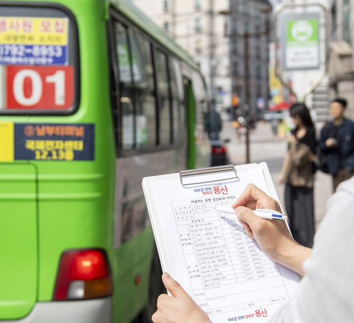 [시민일보 = 문민호 기자] 서울 용산구(구청장 박희영)가 이달부터 오는 11월까지 지역내 마을버스의 배차간격 미준수, 난폭운전, 불친절 등 주요 민원사항 개선을 위한 ‘마을버스 모니터단 사업’을 본격 운영한다.