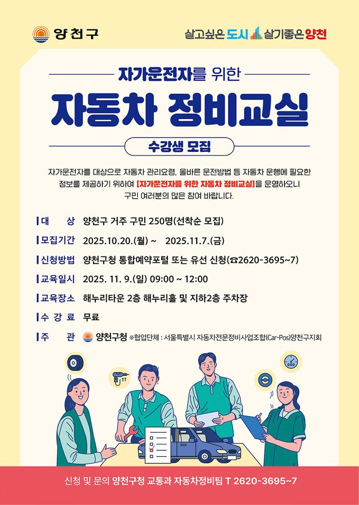 | ▲ 양천구, 자동차 정비교실 안내 포스터. (사진=양천구청 제공) |