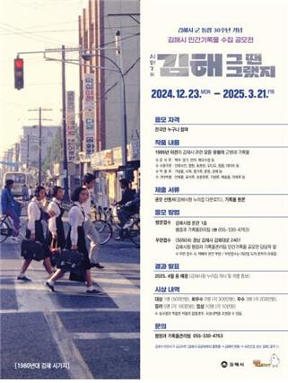 이번 공모전은 1995년 5월 10일 시.군 통합을 이룬 지 30년이 되는 올해를 기념해 개최한다. 수집 대상은 개인이나 단체가 소장하고 있는 1995년 이전의 김해 관련 근현대 기록물 가운데 풍경, 일상생활, 역사.문화, 마을기록, 행정기록 등이며 김해시에 관심 있는 누구나 참여할 수 있다.