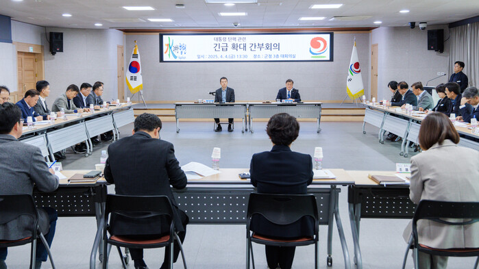 이날 회의는 김윤철 군수 주재로 군청 간부들이 모두 참석한 가운데 헌법재판소의 결정에 따른 정국 상황과 향후 군정 대응 방안에 대해 논의했다.