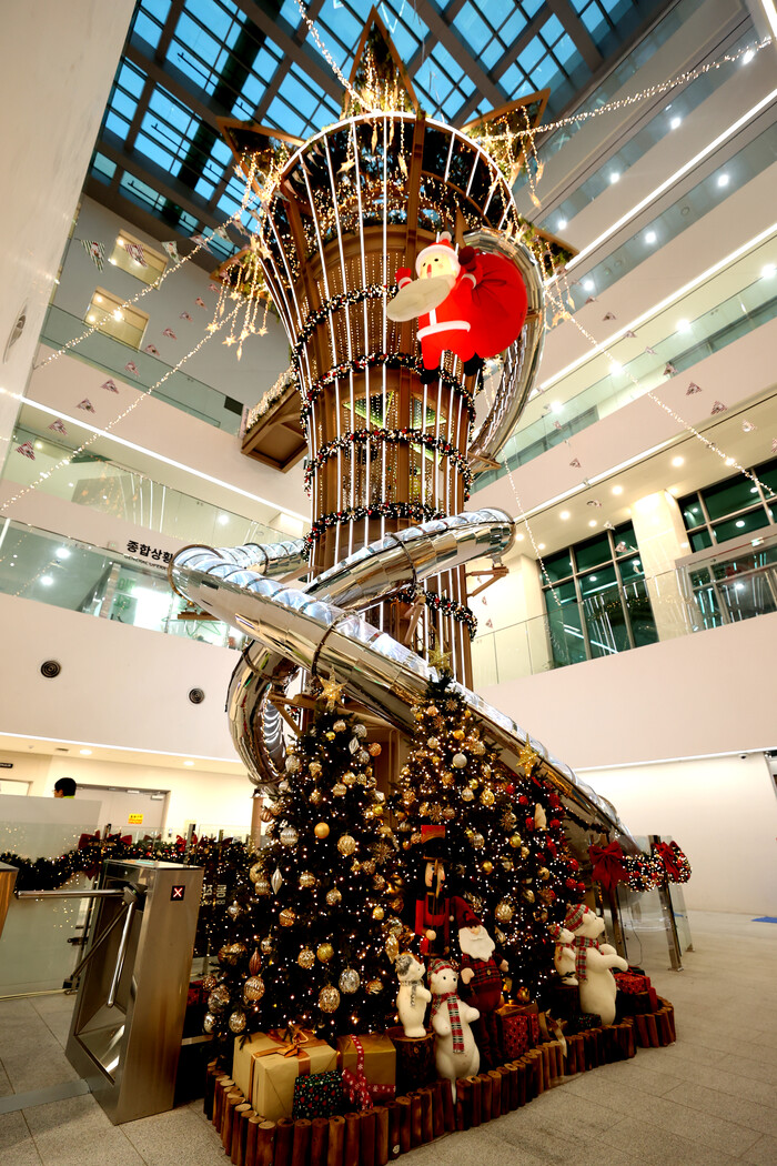 [시민일보 = 여영준 기자] 동작구(구청장 박일하)는 신청사의 명물, 슬라이드 ‘동작스타’를 초대형 크리스마스트리로 새롭게 단장했다고 18일 밝혔다.