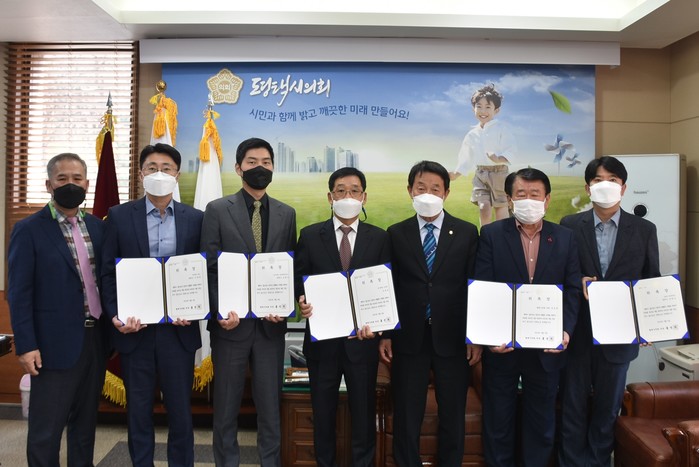 [평택=오왕석 기자] 평택시의회(의장 홍선의)는 4일 시의회 2층 의장실에서 2021회계연도 결산검사위원들에게 위촉장을 수여했다.