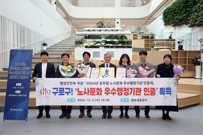 [시민일보 = 박소진 기자] 구로구(구청장권한대행 엄의식)는 4일 정부 세종청사에서 열린 ‘2024년 공무원 노사문화 우수행정기관 인증제’ 심사에서 서울시 25개 자치구 중 유일하게 우수행정기관으로 선정됐다.