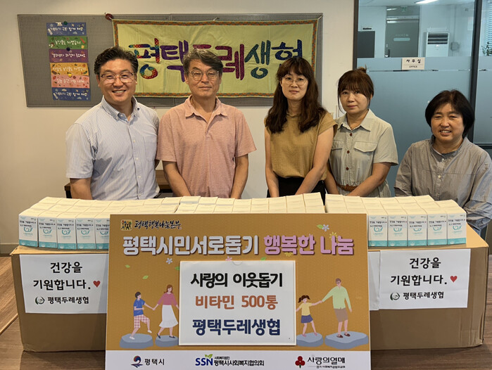 [평택=오왕석 기자] 평택두레생협(이사장 최승호)은 지난 1일 영양제 500통(1,000만원 상당)을 평택행복나눔본부로 전달했다.