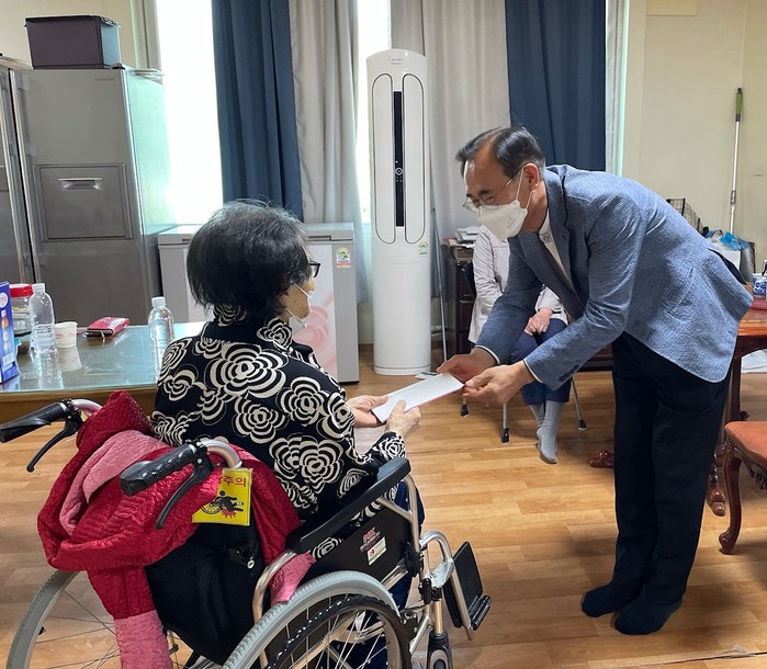 경기 양평군 강하면은 성덕교회로부터 지난 10일 지역내 홀몸노인을 위한 성금 50만원을 전달받았다. 전달한 성금은 신도들의 헌금으로 마련됐으며, 면사무소에서 대상자를 추천받아 해당 금액을 전달했다. 사진은 이날 대상 노인에게 성금을 전달하고 있는 모습. (사진제공=양평군청)