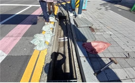 이에 시는 해수 역류로 인한 피해를 최소화하기 위해 침수 우려지역 18개소의 배수측구와 맨홀 등을 점검하고, 자체인력으로 우수받이 준설을 실시했다.