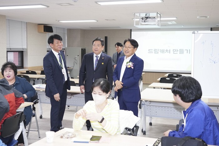 | ▲ 강기정 광주광역시장(사진 가운데)이 26일 오후 남구 가족사랑나눔·지역자활센터 개관식에 참석해 내빈들과 시설을 둘러보고 있다./광주광역시 제공 |