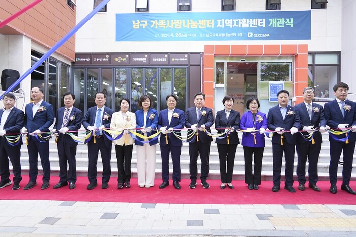 사회적 관계망을 잇고 공동체를 실현할 ‘남구 가족사랑나눔·지역자활센터 개관식’이 26일 오후 남구 노대동에서 강기정 광주광역시장을 비롯해 김병내 남구청장, 임미란·서임석 시의원, 주민 등 200여명이 참석한 가운에 열렸다.