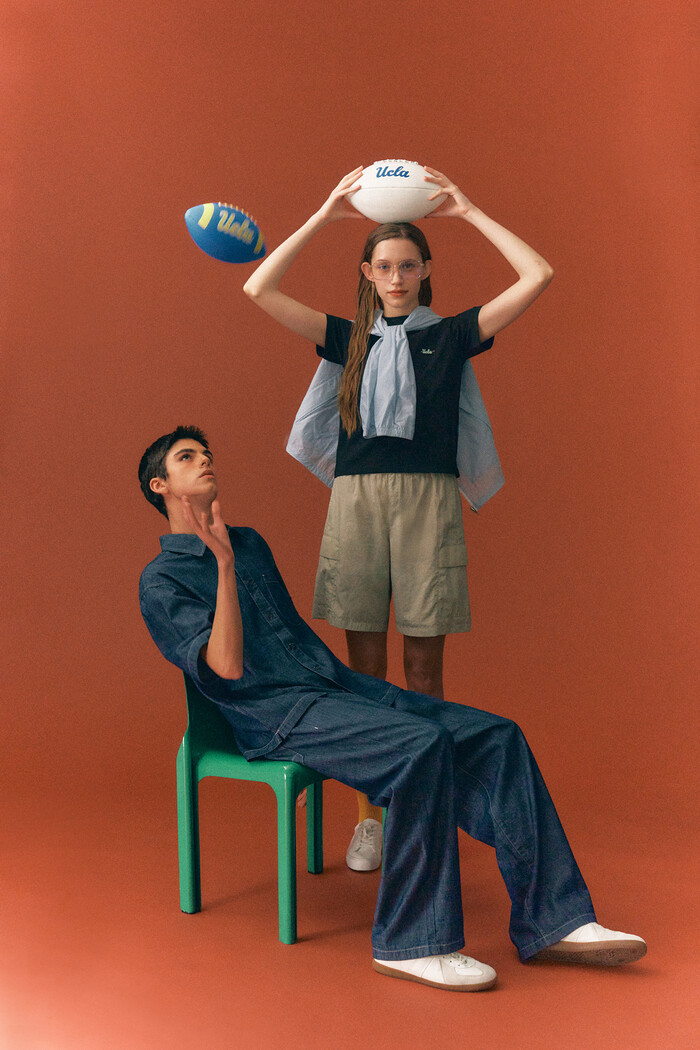 이번 25SS 컬렉션은 남녀 유니로 착용할 수 있는 다양한 우븐 자켓과 UCLA의 시그니처 아이템인 데님 자켓, UCLA의 헤리티지 심볼이 심플한 포인트로 결합되어 봄, 여름 시즌과 어울리는 가볍고 여유로운 실루엣을 강조했다. 스포티한 요소와 캐주얼한 아이템을 확장시켜 일상에서 트렌디하게 입을 수 있는 동시에 스타일을 살릴 수 있는 아이템들이 다수 포함되어 있다.