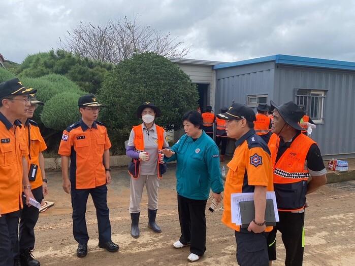 | ▲ 해남소방서, 문내면 폭우 피해 현장 복구 출동 대책 논의 / 해남소방서 제공 |