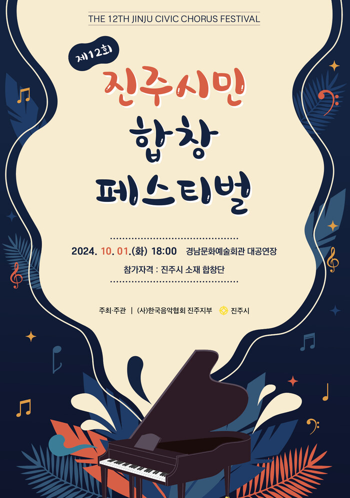 오는 10월 1일 저녁 6시, 경남문화예술회관에서 ‘2024 제12회 진주시민 합창 페스티벌’이 열린다.