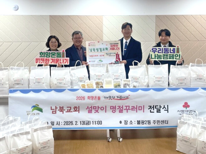 오근영 불광2동장은 “매년 명절마다 지역의 어려운 이웃을 위해 꾸준히 나눔을 실천해 주시는 남북성결교회에 깊이 감사드린다”며 “후원해 주신 꾸러미는 도움이 필요한 이웃들에게 정성껏 전달하겠다”고 밝혔다.