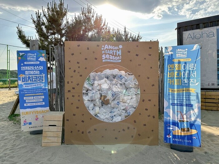 엔제리너스는 환경 보호에 대한 중요성을 인식하고 널리 확산하기 위해 ‘ANGEL IN EARTH(엔젤 인 얼스, Angel In Us+Earth)’ 캠페인을 기획하고 2021년부터 꾸준히 진행하고 있다. 올해는 고객과 함께 깨끗한 바다와 바다 생물의 안전한 서식지를 만들고자 강원도 양양 서피 비치에서 팝업 부스를 운영했다.