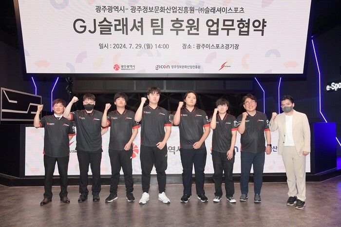 협약에 따라 ㈜슬래셔이스포츠 구단은 올 12월까지 ▲광주시 로고가 새겨진 유니폼 착용 ▲팀명에 ‘광주(GJ)’ 포함 ▲이터널 리턴 게임 종목의 지역 연고 내셔널리그 대회에 광주지역 대표로 활동하게 된다. 또 이스포츠경기장 프로그램 연계 행사 등 이스포츠 산업 발전과 경기장 활성화를 위한 프로그램에 참여한다.