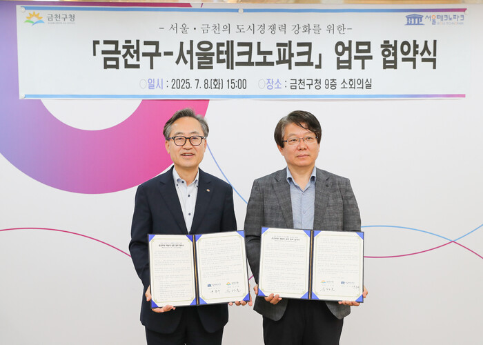 [시민일보 = 여영준 기자] 금천구(구청장 유성훈)는 최근 구청 소회의실에서 서울테크노파크와 ‘서울·금천의 도시경쟁력 강화를 위한 공군부대 개발에 관한 업무협약’을 체결했다고 9일 밝혔다.