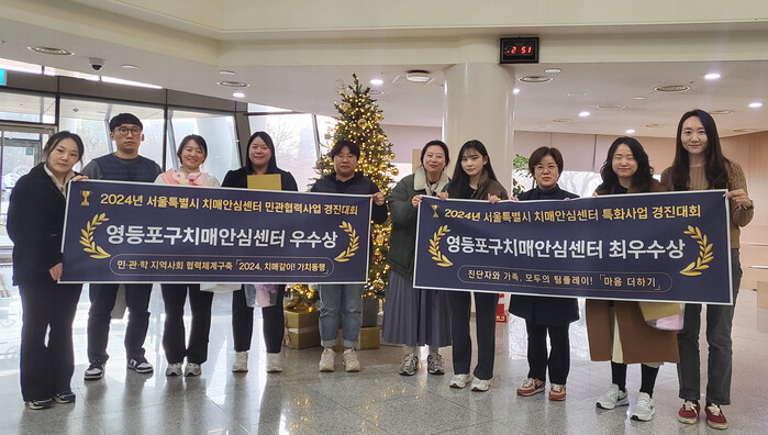[시민일보 = 여영준 기자] 영등포구(구청장 최호권)는 12일 한성백제박물관 강당에서 개최된 ‘2024년 서울시 치매관리 사업 성과평가 대회’에서 2개 부문 수상으로 2관왕의 영예를 안았다고 밝혔다.