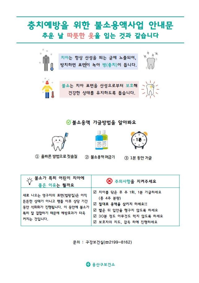 | ▲ 불소용액사업 안내문. (사진제공=용산구청) |