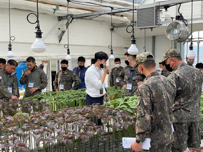 경기 포천시농업기술센터는 최근 군 전역 예정자 및 전역자를 대상으로 영농창업의 기회를 제공하고, 포천시로 영농정착을 유도하는 ‘2022학년도 포천시 청년농업사관학교 입학식’을 개최했다. 사진은 이날 입학식이 진행되고 있는 모습. (사진제공=포천시청)