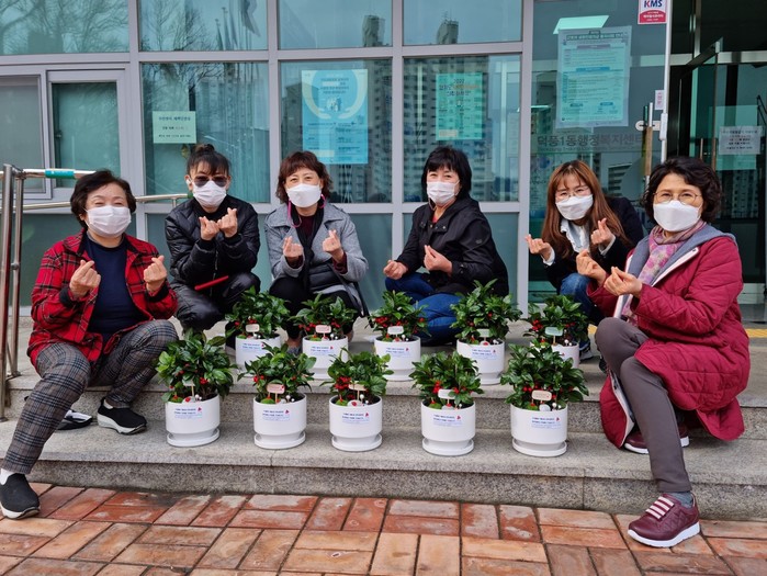 경기 하남시 덕풍1동 지역사회보장협의체 위원들은 지난 21일 거동이 불편한 저소득 노인 10가구를 방문해 봄꽃 화분을 전달하고 안부를 살폈다. 사진은 이날 위원들이 기념촬영을 하고 있는 모습. (사진제공=하남시청)