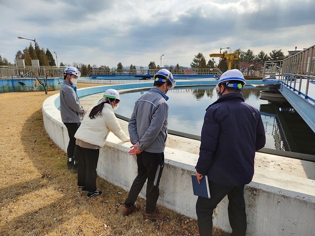 | ▲ 평택시 팽성하수처리장을 방문해 시설을 둘러보고 있다. |