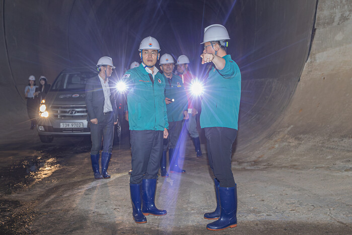 이날 점검은 이기재 양천구청장이 유관부서 점검반과 함께 저류배수터널 끝부분인 지하 3.6km구간까지 직접 차량을 타고 진입해 확인하는 방식으로 진행됐다.