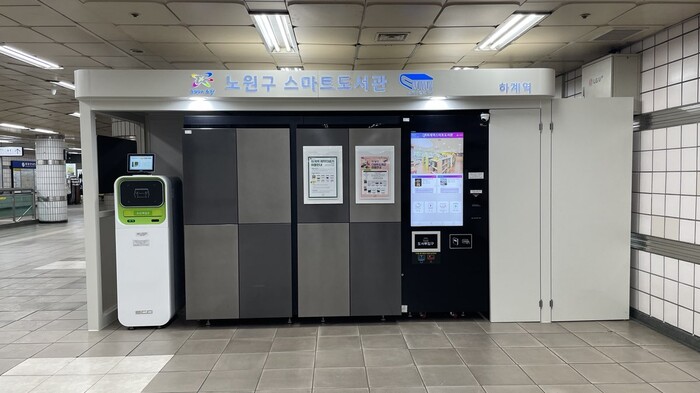| ▲ 하계역에 설치된 스마트 도서관. (사진=노원구청 제공) |