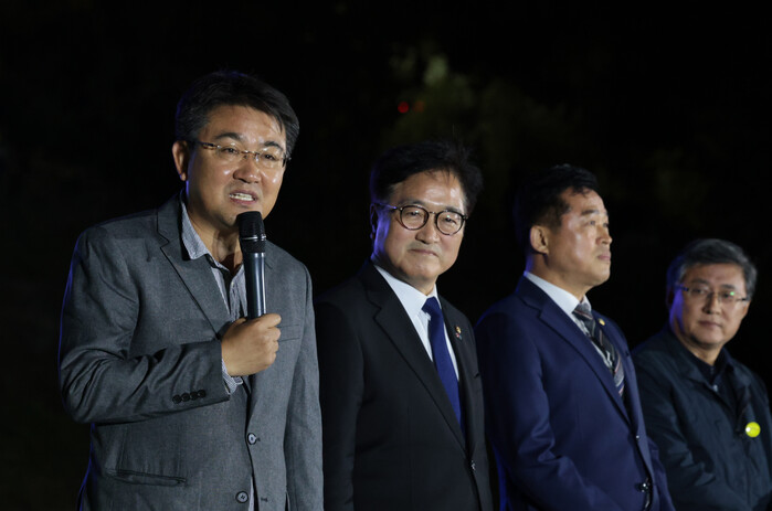 | ▲ 오승록 구청장(왼쪽 첫번째)이 '2024년 노원달빛산책' 개막식에 참석해 인사말을 하고 있다. (사진=노원구청 제공) |