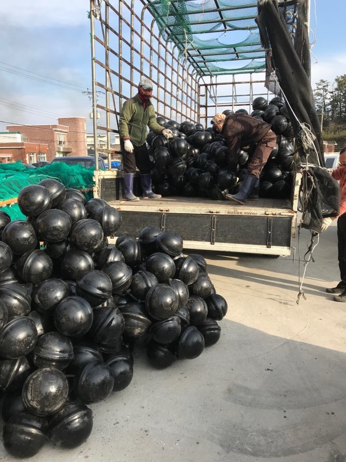 | ▲ 친환경 부표 공급 / 사진=해남군 제공 |