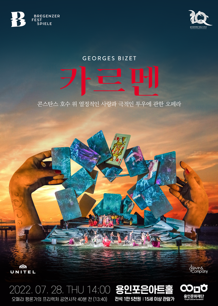 처음 막을 여는 7월 공연은 세계적인 호수 오페라 축제인 ‘브레겐츠 페스티벌’의 프로그인 <카르멘>으로 진행된다. 세계 주요 극장에서 독창적인 작품으로 실력을 인정받은 카스퍼 홀텐 연출과 아델, U2 등 세계적인 팝스타들의 콘서트 무대를 디자인한 에스 데블린의 무대가 아름다운 보덴 호수와 어울려 눈이 즐거운 공연을 선보인다.