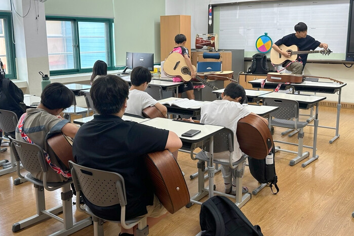| ▲ 서대문구 교육경비 보조사업으로 이뤄진 ‘1인 1악기 수업’ 진행 모습. (사진=서대문구청 제공) |