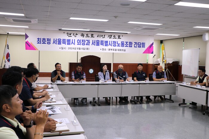 [시민일보 = 이대우 기자] 최호정 서울시의회 의장이 서울시 자치구 소속의 환경공무관들로 조직된 서울특별시청노동조합(위원장 이대옥)을 방문해 위원장단과 25개 자치구 지부장들을 만나 간담회를 갖고 격려했다.