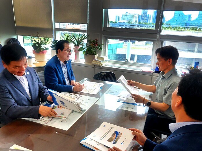 | ▲ 신우철 완도군수, 국비 확보 및 현안 사업 해결 위해 기획재정부 국토교통예산과장 면담(출처=완도군) |