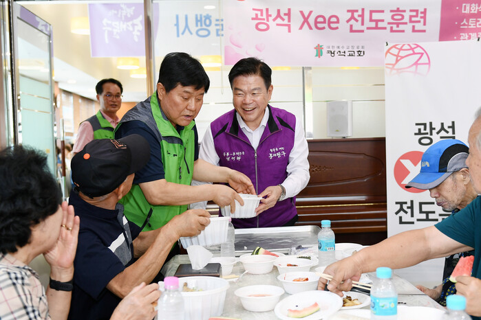 [시민일보 = 이대우 기자] 서울 동대문구 용신동 희망복지위원회는 최근 용신동 광석교회 5층 식당에서 지역내 홀몸노인 200가구를 대상으로 건강한 여름을 나실 수 있도록 전복삼계탕, 제철 과일 등을 대접하는 행사를 진행했다.