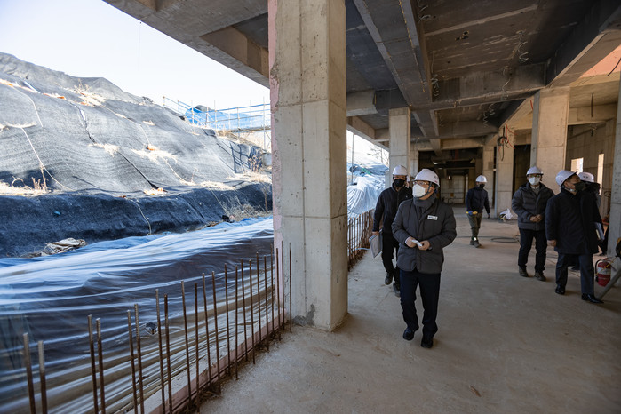 | ▲ 최근 김경호 구청장(맨 앞)이 안전점검차 공사현장을 돌아보고 있다. (사진=광진구청 제공) |