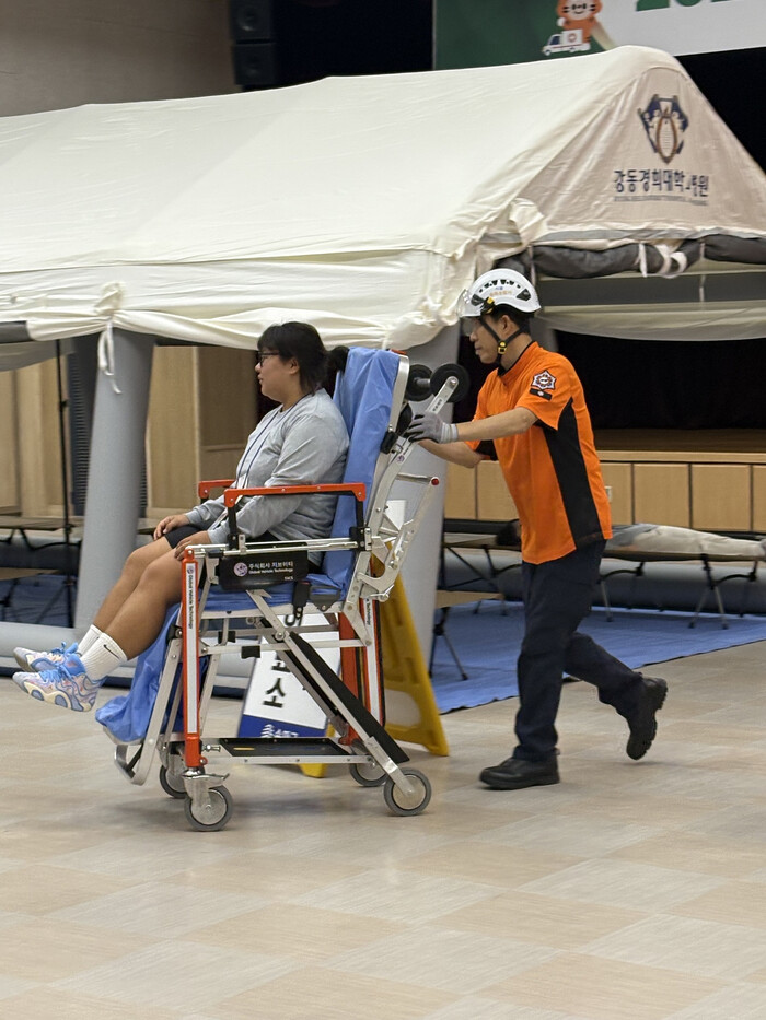 이를 기반으로 ▲재난상황 발령 ▲현장응급의료소 설치 ▲환자 중증도 분류 ▲응급처치 실습 ▲이송 등을 실전처럼 훈련했다.