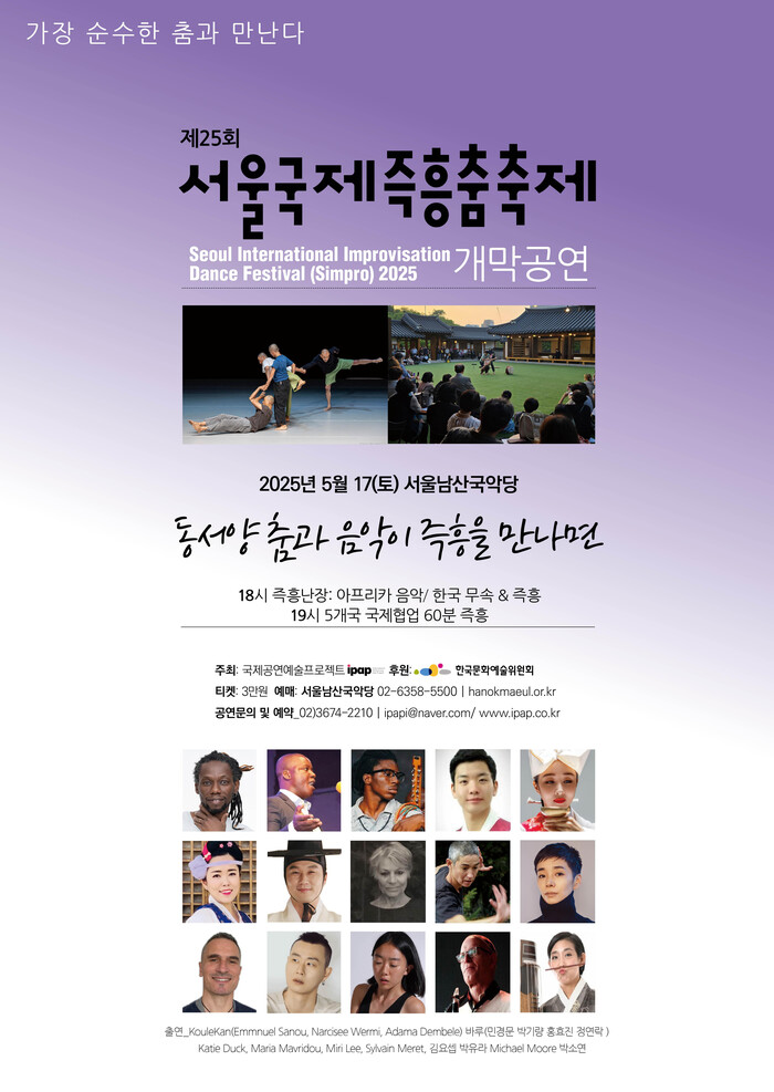 야외마당에서 아프리카&한국 무속음악이 즉흥춤과 만나는 즉흥 난장(오후 6시)에 이어 8명 아티스트에 의한 5개국 국제협업 즉흥공연이 크라운 해태홀(오후7시)에서 펼쳐진다.