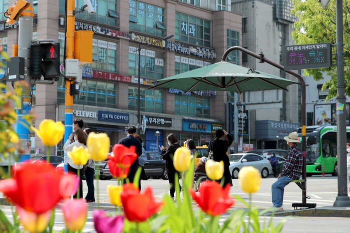 [시민일보 = 이대우 기자] 서울 성동구(구청장 정원오)가 올해 여름 이른 더위가 예상됨에 따라 최근부터 무더위 그늘막 운영을 시작했다.