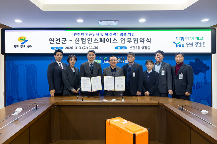 [연천=조영환 기자] 경기 연천군은 최근 군청 본관 상황실에서 항공우주·AI 전문기업 한컴인스페이스와 ‘연천형 인공위성 및 AI 전략 구상을 위한 업무협약’을 체결했다고 5일 밝혔다.