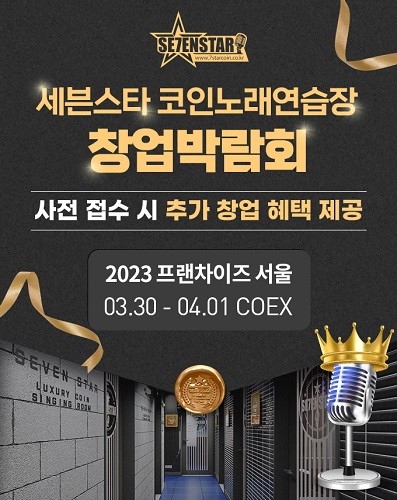 세븐스타코인노래방은 업계 최다 가맹점을 보유하고 있는 코인노래방 브랜드로, 이번 창업 박람회는 본 브랜드의 상권 분석, 매출 노하우, 창업 경쟁력 등을 확인할 수 있는 좋은 기회가 될 것으로 보인다.