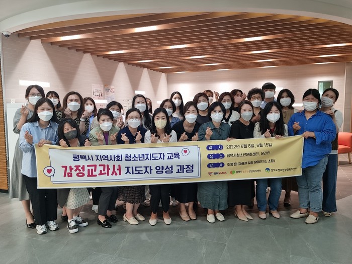 [평택=오왕석 기자] 평택시(시장 정장선)에서 평택YMCA 위탁 운영 중인 평택시청소년상담복지센터는 지난 8일과 15일, 지역사회 청소년지도자를 대상으로 ‘감정교과서’ 지도자 과정을 진행했다고 밝혔다.