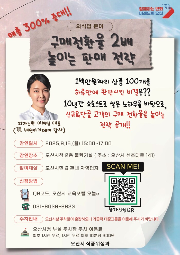 | ▲ ‘외식업 활성화를 위한 구매전환율 2배 높이는 판매 전략’ 강연 포스터. (사진=오산시청 제공) |