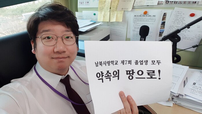 ‘약속의 땅’이란 주제 아래 총 여섯 명의 졸업생을 배출한 남북사랑학교 제7회 졸업식을 진심으로 축하합니다.”라며 인사했다.