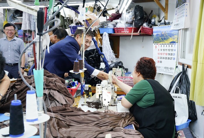 | ▲ 지난해 종로구 봉제 산업장을 방문한 정문헌 구청장. (사진=종로구청 제공) |
