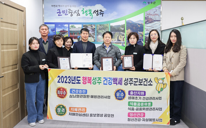 [성주=박병상 기자] 경북 성주군은 군민 건강증진을 위한 맞춤형 보건의료서비스를 제공한 결과 2023년도 중앙 및 경상북도 평가에서 보건사업 5개 부문에서 수상하는 쾌거를 이루었다.