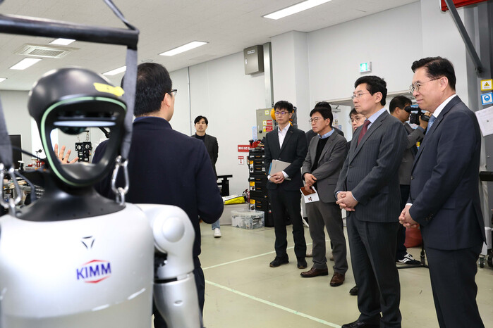 | ▲ 이상일 용인특례시장이 13일 한국기계연구원을 찾아 첨단로봇연구센터와 반도체장비연구센터를 둘러보고 있다. |